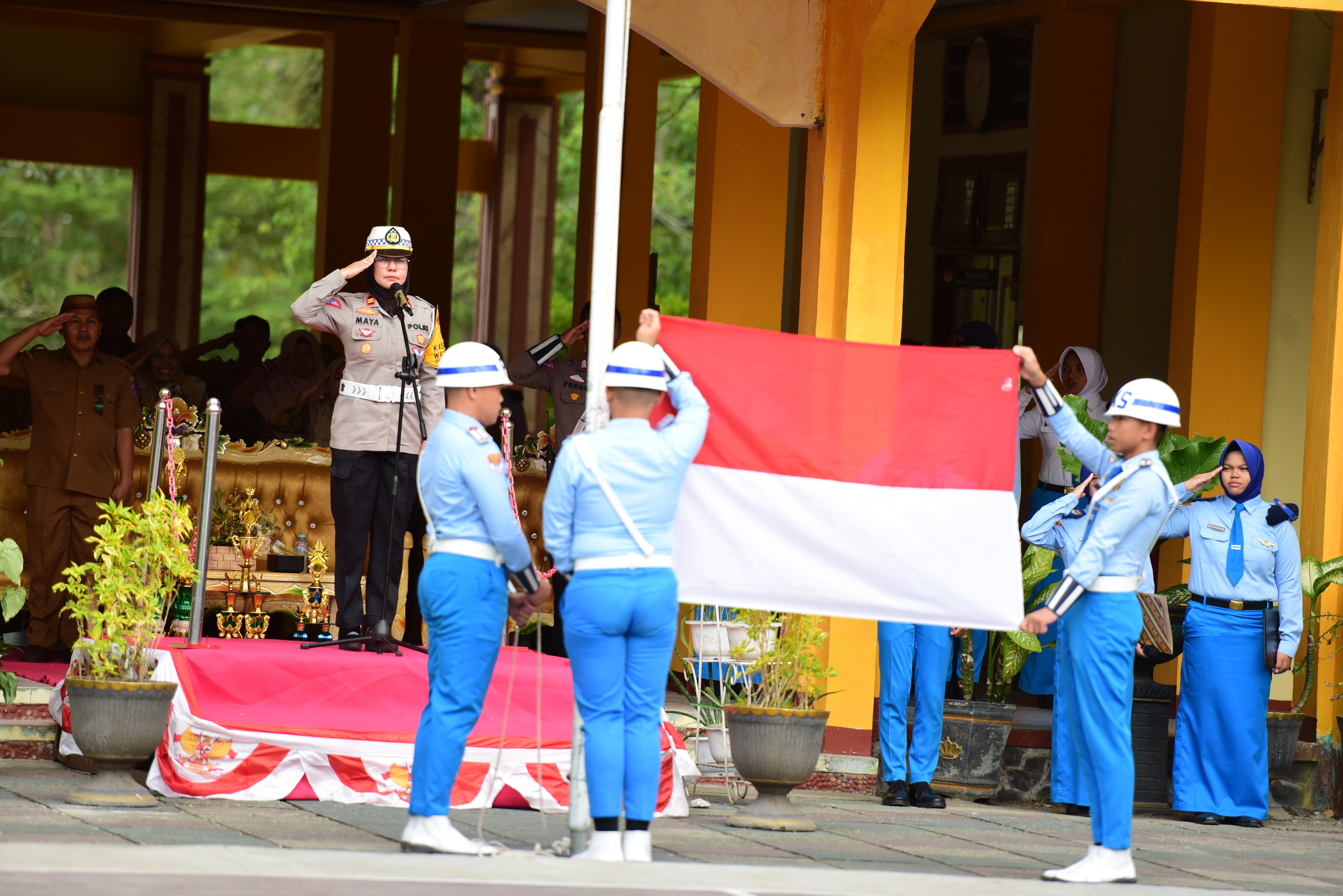 Seperti biasanya upacara bendera bulanan SMAS terpadu Wira Bhakti Gorontalo mengundang Tokoh yang akan bertindak sebagai inspektur upacara,kali ini giliran KASATLANTAS Polres Bone Bolango IPTU Nurmaya Kasih,SH yang didaulat menjadi Inspektur Upacara,sekaliagus menyerahkan secara simbolis PIagam Penghargaan Juara Lomba PKS Se polda Gorontalo,dimana POLRES Bone Bolango diwakili Oleh SMA Terpadu Wira bhakti.