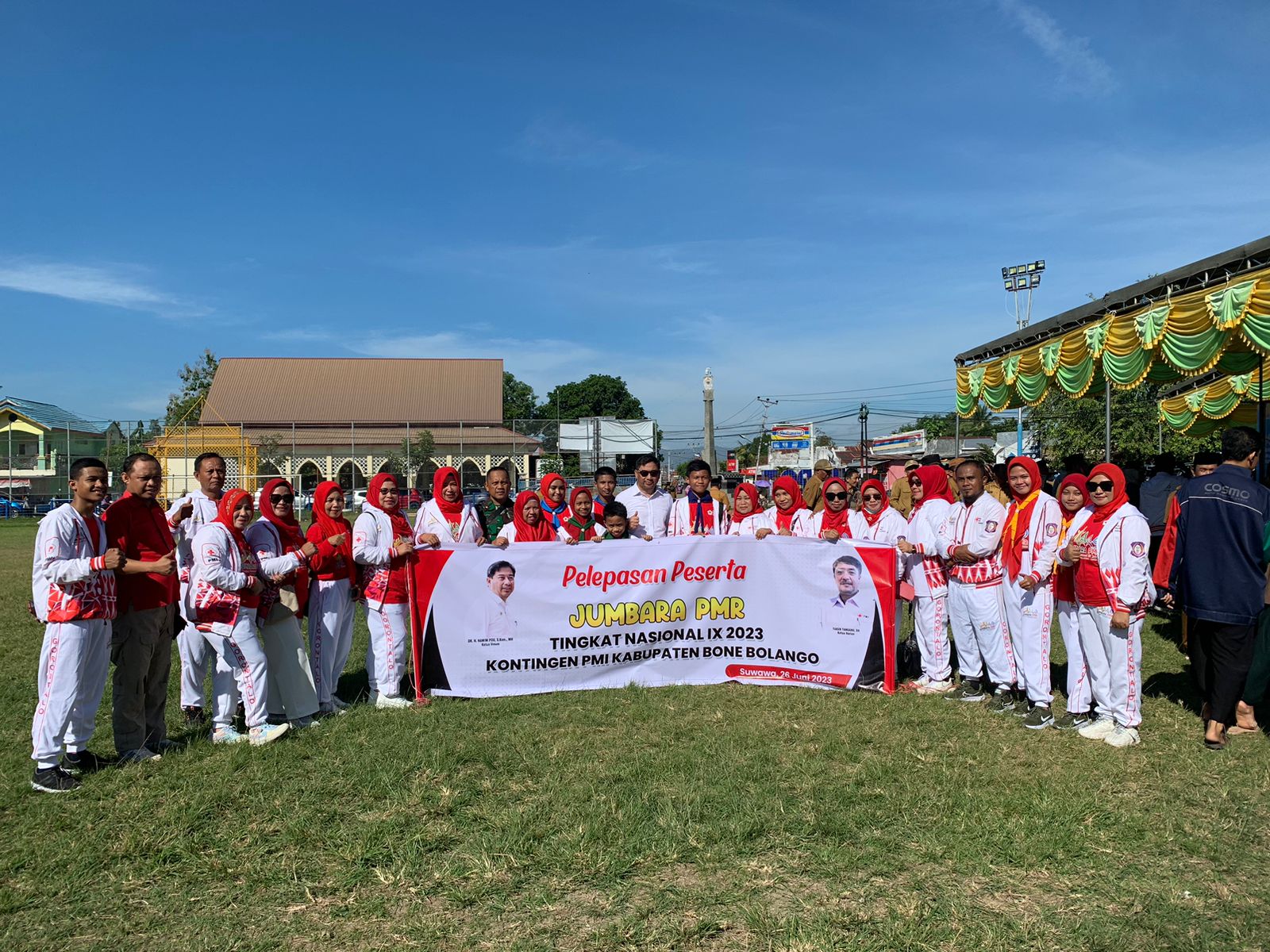di sela-sela pelaksanaan apel kerja di Lingkungan Pemerintah Kabupaten Bone Bolango yang digelar di Lapangan Ippot Tapa, Kecamatan Tapa, Senin (26/6/2023) Bupati Bone Bolango Hamim Pou, Wakil Bupati Merlan S. Uloli, dan Sekretaris Daerah Ishak Ntoma resmi memberangkatkan kontingen yang terdiri dari 8 orang peserta, 7 orang pembina, 3 orang Staf PMI Bone Bolango, 6 orang pengurus PMI Bone Bolango, dan 1 orang salah satu orang tua dari peserta.