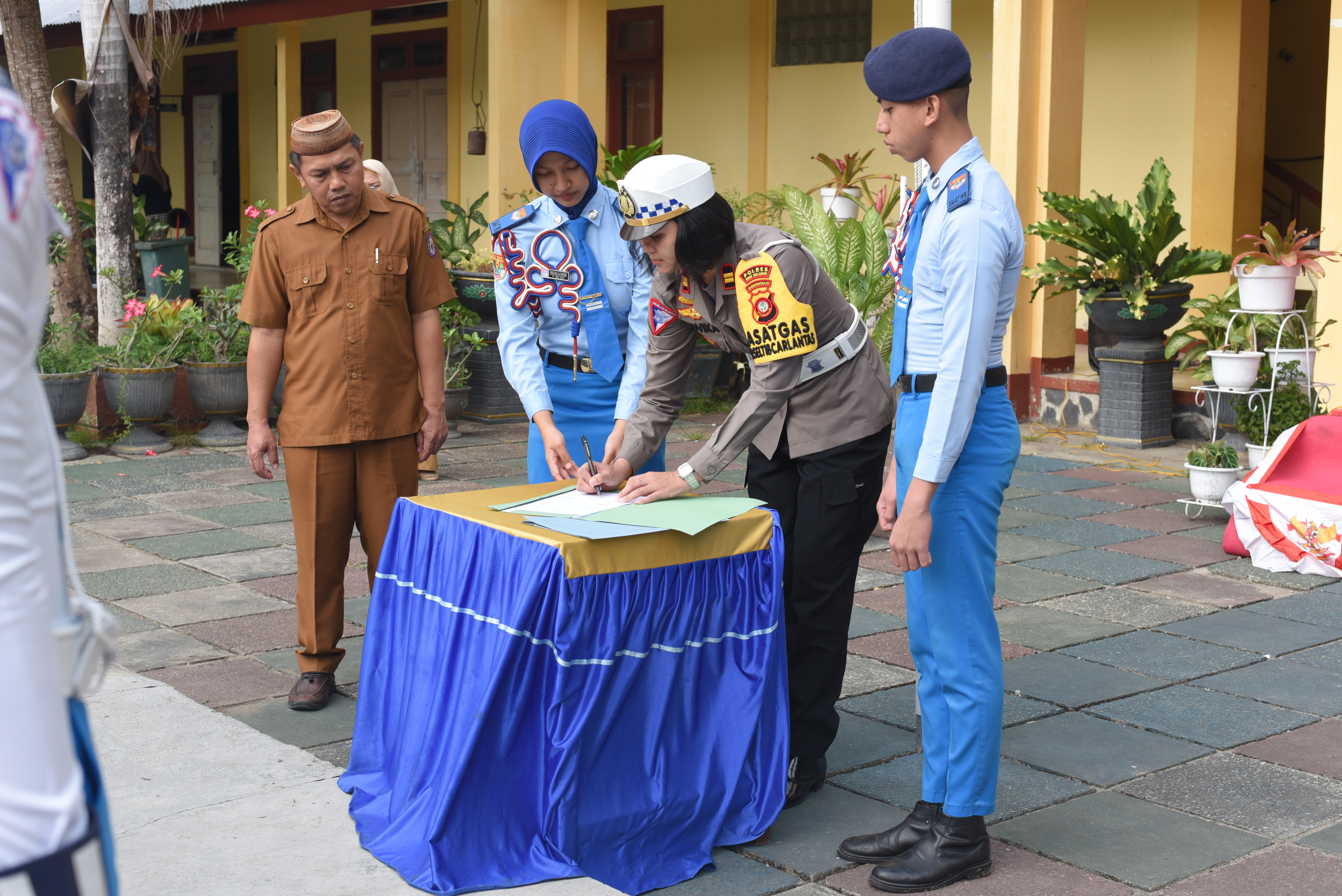 KASATLANTAS POLRES BONE BOLANGO, PIMPIN LANGSUNG SERAH TERIMA JABATAN POLISI TARUNA SMAT WIRA BHAKTI