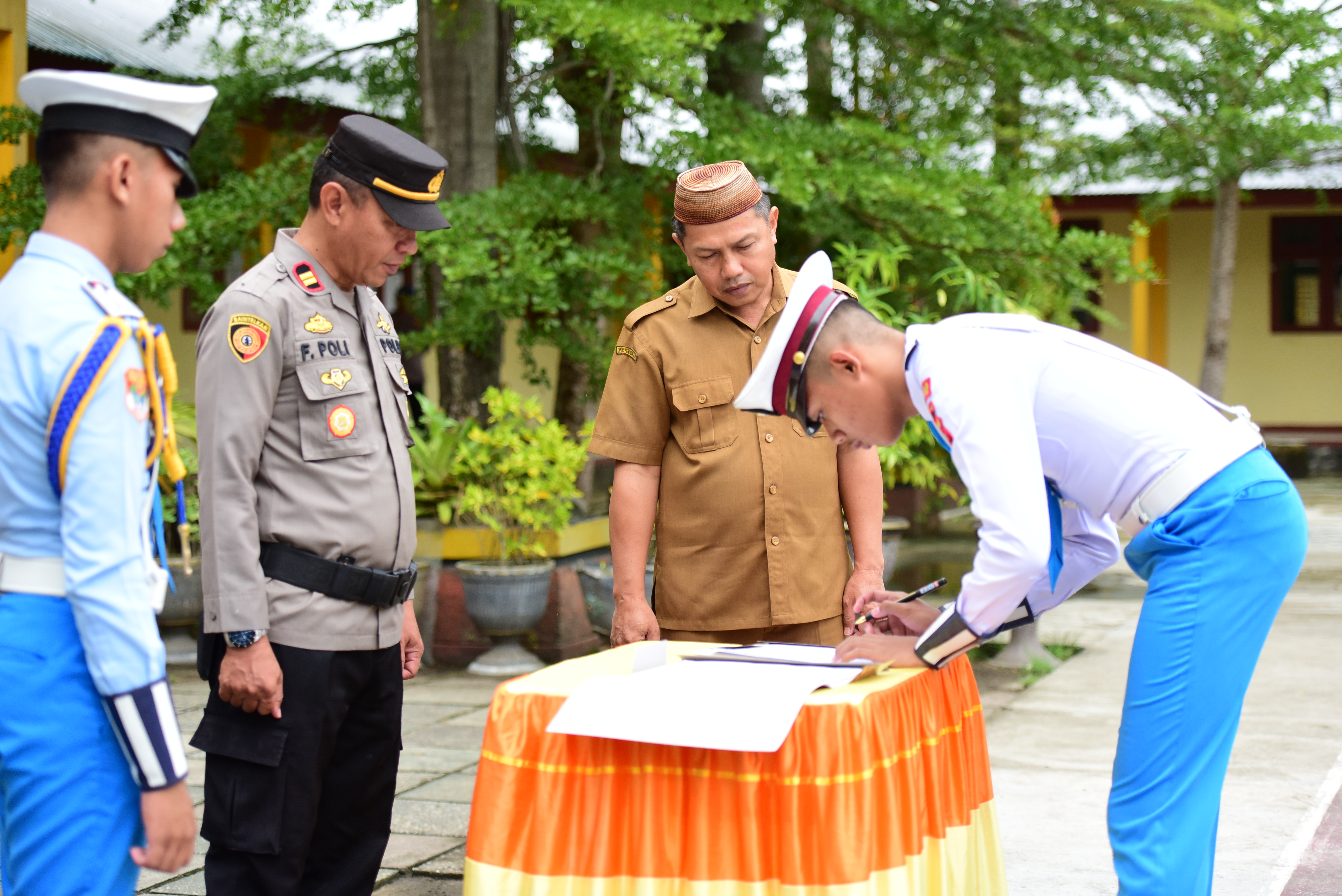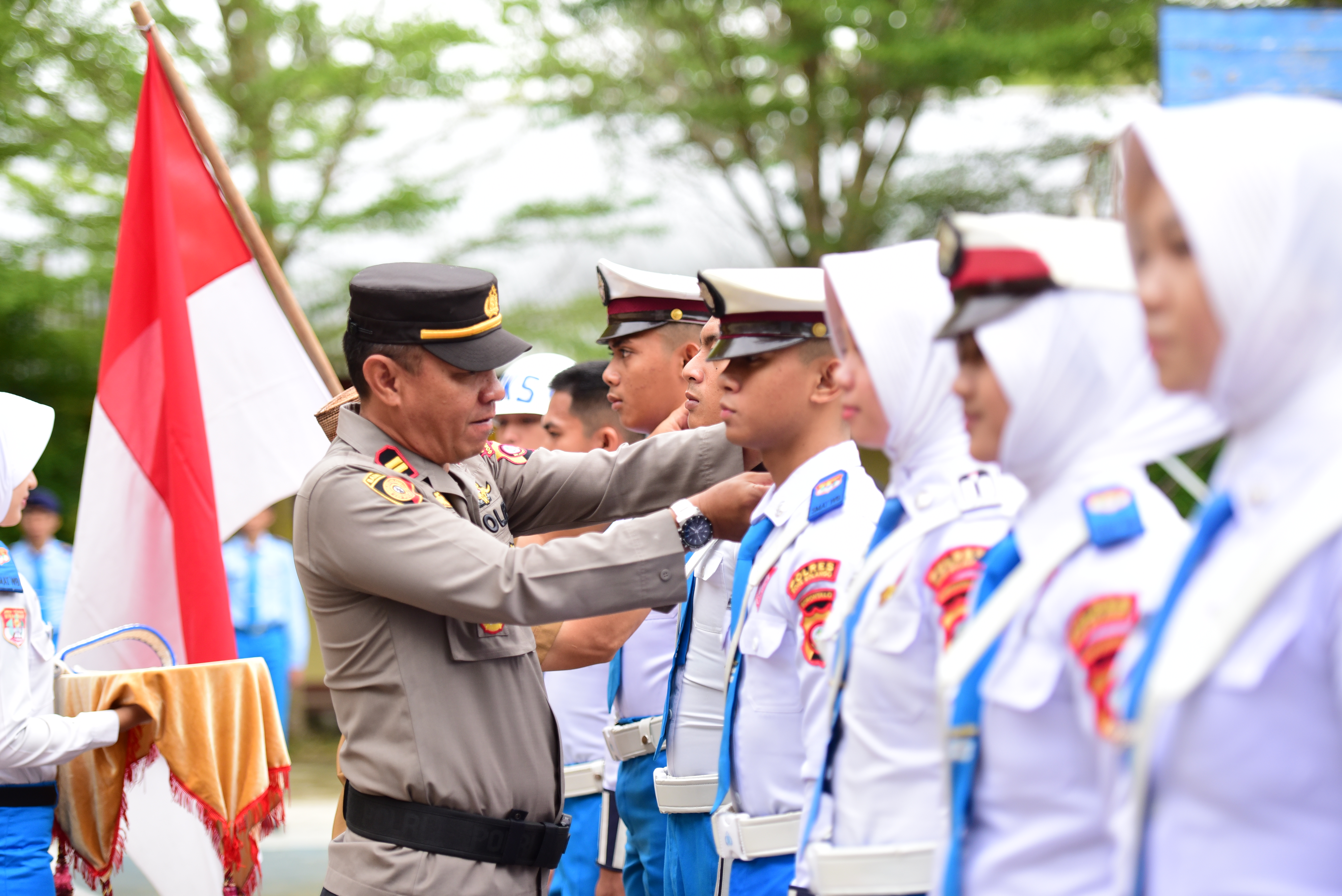 KASATLANTAS POLRES BONE BOLANGO, PIMPIN LANGSUNG SERAH TERIMA JABATAN POLISI TARUNA SMAT WIRA BHAKTI